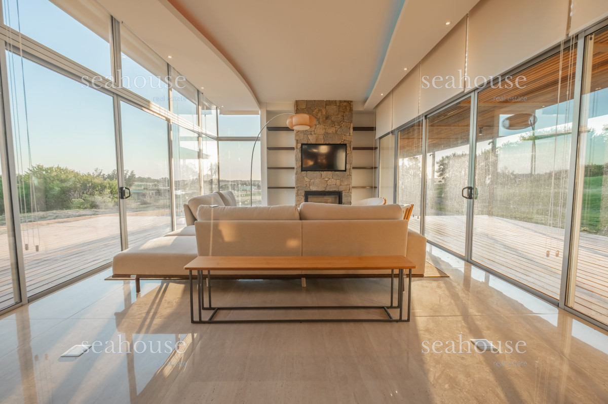 - Calefacción por losa radiante (de agua) en toda la casa, producida por sistema de bomba de calor. Además consta de aire acondicionado en todos los ambientes principales. La capacidad de funcionamiento de la bomba de calor, está calculada para calefaccionar posible piscina.